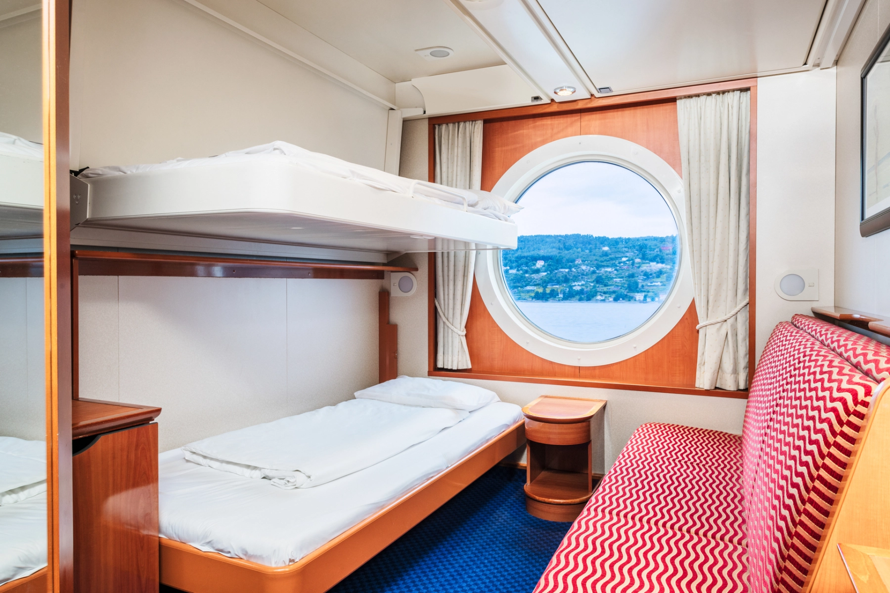 There are a few allergy-friendly cabins without carpets in the following categories: Standard Cabin with ocean view and bunk beds, Standard Cabin with promenade view, and Color Class with ocean view.