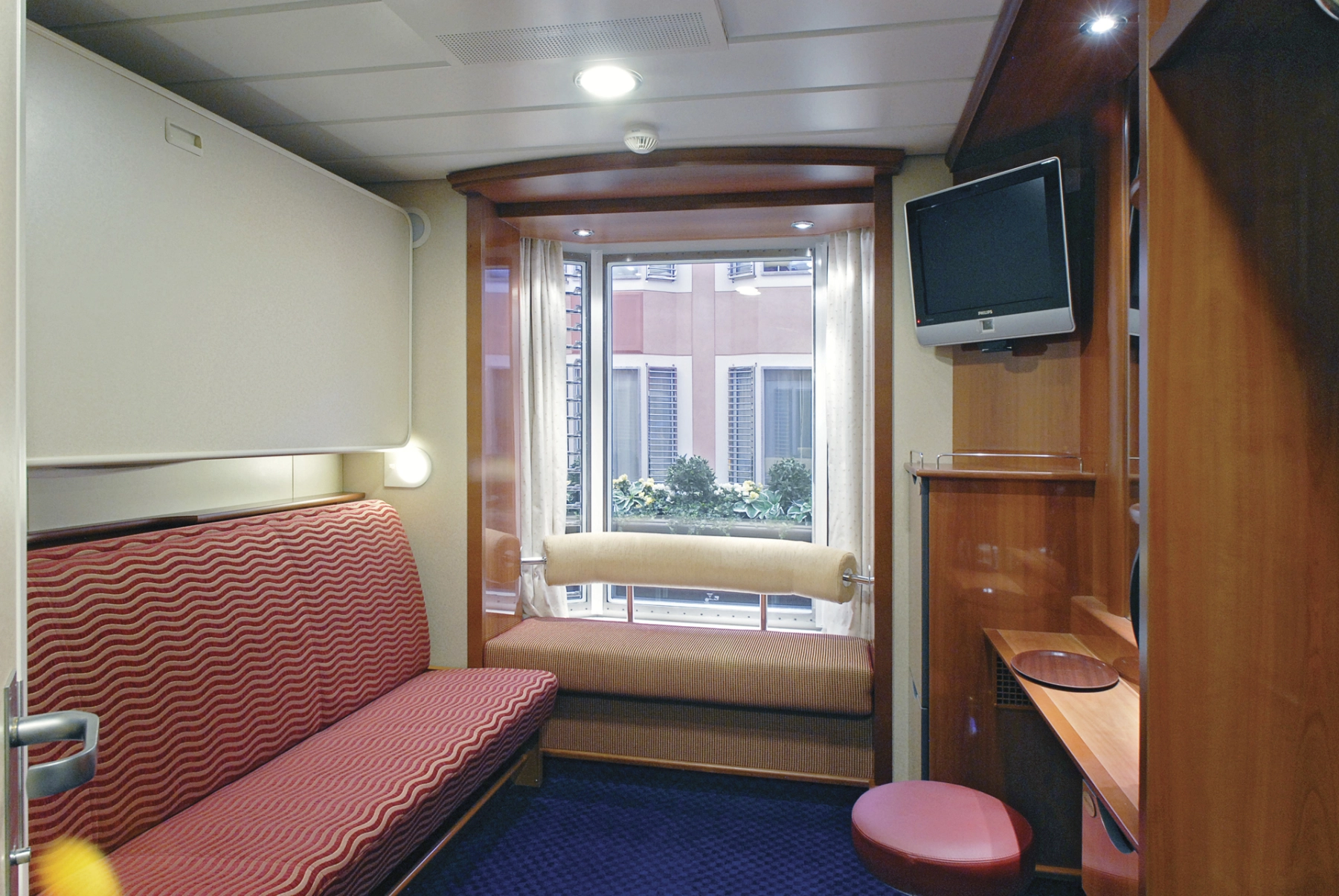 Some of our cabins can be booked with a connecting door between two cabins. It is possible to order connecting standard cabins on our website. You have to choose 1 cabin for the entire travel party and the system will suggest a connecting cabin if available. Connecting Color Class cabins can only be booked over the phone. Please contact us on: +45 995 61 900. Booking requires 4–8 people in the cabin.